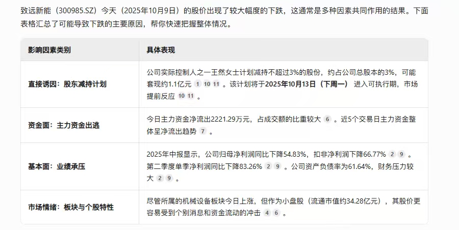$致远新能(SZ300985)$ 这是AI元宝对今天暴跌的原因分析