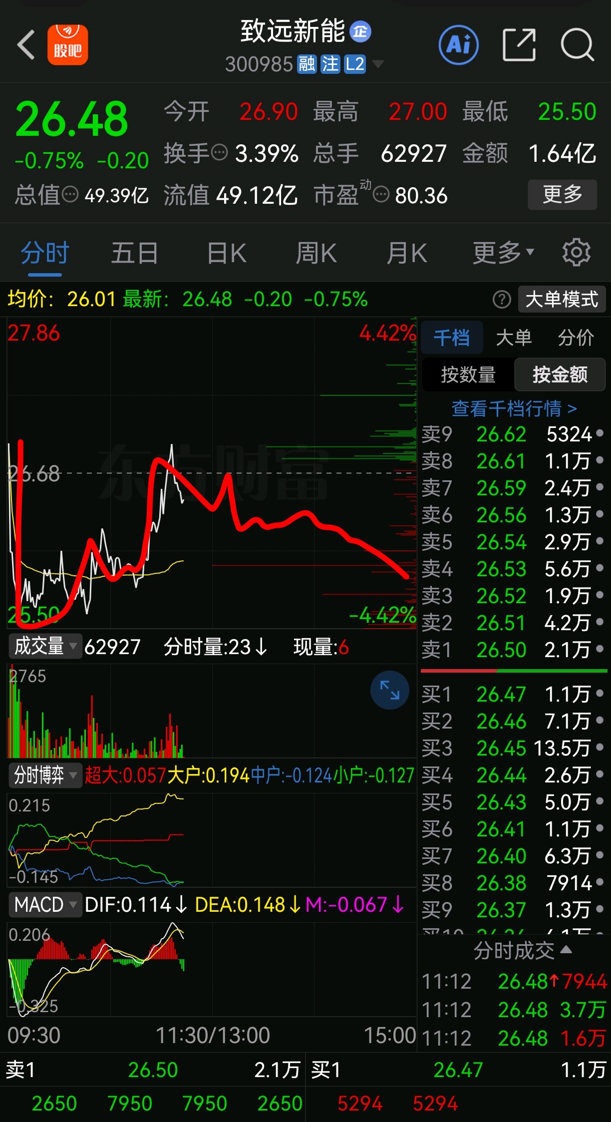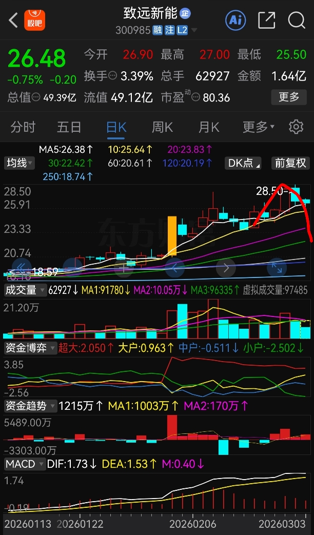 $致远新能(SZ300985)$ 纯纯后排跟风了,要等板块里的后排股 厚普股份 $蜀道装备(SZ300540)$ $富瑞特装(SZ300228)$ 这些都大阳线起来后,致远才敢勉强红盘,主要是前面涨的太多了,里面的资金都要出货,昨天今天全是借天然气板块大涨出货的,逻辑不正只能被大资金抛弃,这个红盘不可能有持续性,肯定会被砸死。大资金聚集的都是核心逻辑股,杂毛股都是要被抛弃的