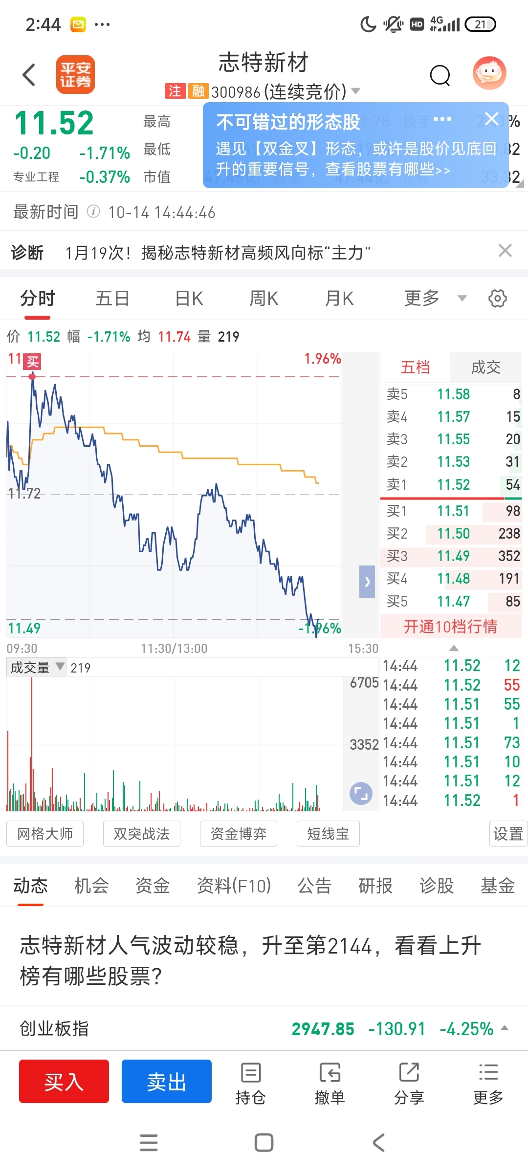 $志特新材(SZ300986)$ 每次买进去都大亏,朋友告诉我远离那些让你亏的股,我每次都不听,想着要把亏损的赚回来,真的输在自己的倔强上,这股接下来又要大跌了,对不起,我又进了