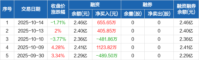 志特新材:融资净买入655.65万元,融资余额2.46亿元(10-14)