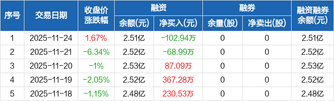 志特新材:融资净偿还102.94万元,融资余额2.51亿元(11-24)