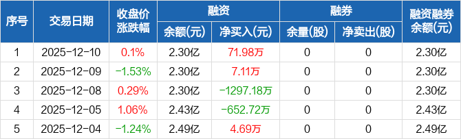 志特新材:融资净买入71.98万元,融资余额2.3亿元(12-10)