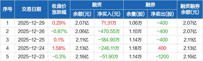 志特新材:融资净买入71.31万元,融资余额2.07亿元(12-29)