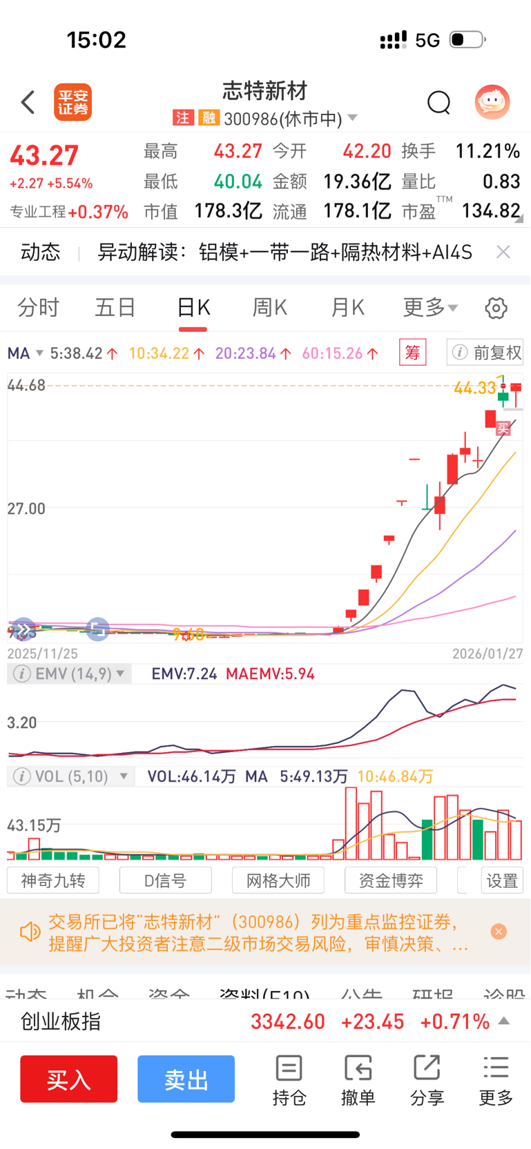 $志特新材(SZ300986)$ 才到半山腰,去其它票也是死路一条,不动才可能回点血,其他地方根本没持续性,反正都这样了,听天命