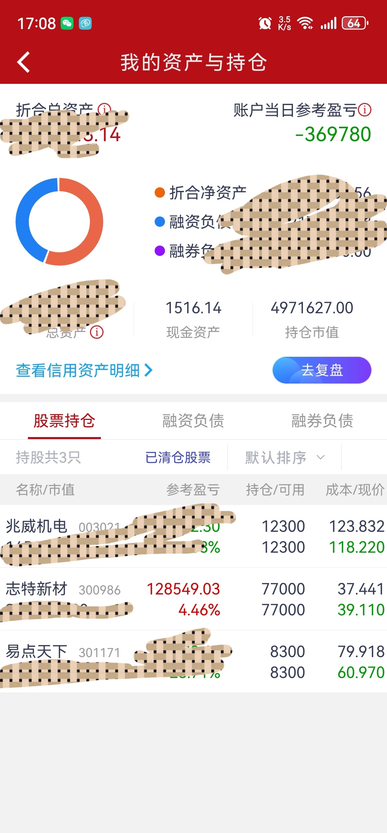 拿了一星期赚50万没走今天这个急跌肉痛了