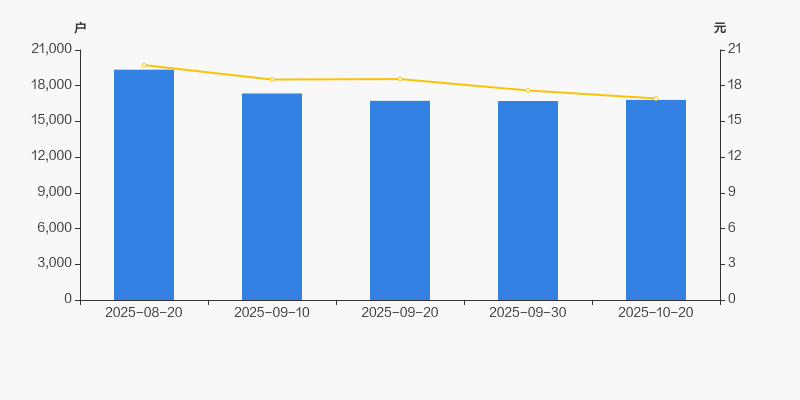 2025年8月20日至今,公司股东户数显著下降,区间跌幅为13.11%。2025年8月20日至2025年10月20日区间股价下降14.19%。