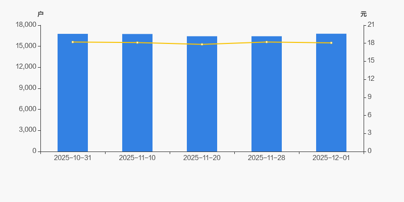 截至2025年12月1日,公司最新总股本为1.73亿股,且均为流通股。户均持有流通股数量由上期的1.05万股下降至1.03万股,户均流通市值18.66万元。