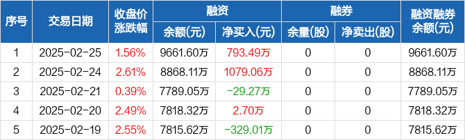津荣天宇:融资净买入793.49万元,融资余额9661.6万元(02-25)