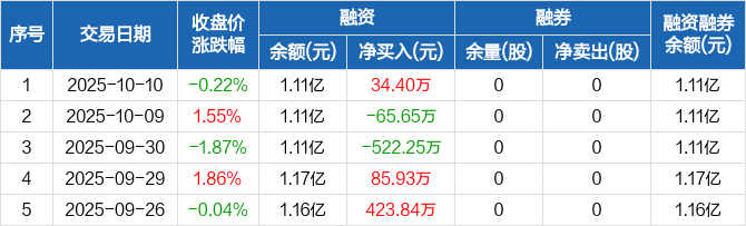 津荣天宇:融资净买入34.4万元,融资余额1.11亿元(10-10)