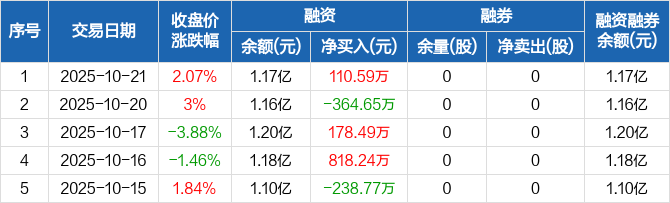 津荣天宇:融资净买入110.59万元,融资余额1.17亿元(10-21)