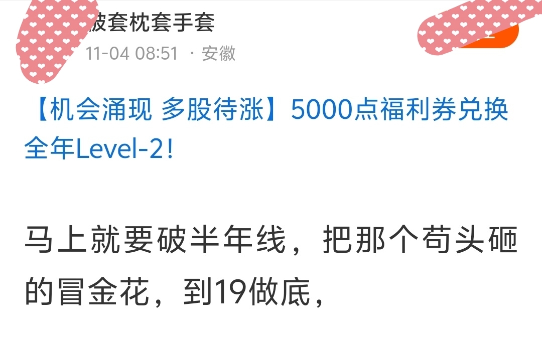郑重声明:用户在财富号/股吧/博客等社区发表的所有信息(包括但不限于文字、视频、音频、数据及图表)仅代表个人观点,与本网站立场无关,不对您构成任何投资建议,据此操作风险自担。请勿相信代客理财、免费荐股和炒股培训等宣传内容,远离非法证券活动。请勿添加发言用户的手机号码、公众号、微博、微信及QQ等信息,谨防上当受骗!
