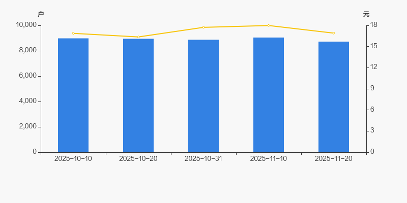 截至2025年11月20日,公司最新总股本为2.11亿股,其中流通股本为1.51亿股。户均持有流通股数量由上期的1.67万股上升至1.73万股,户均流通市值29.19万元。