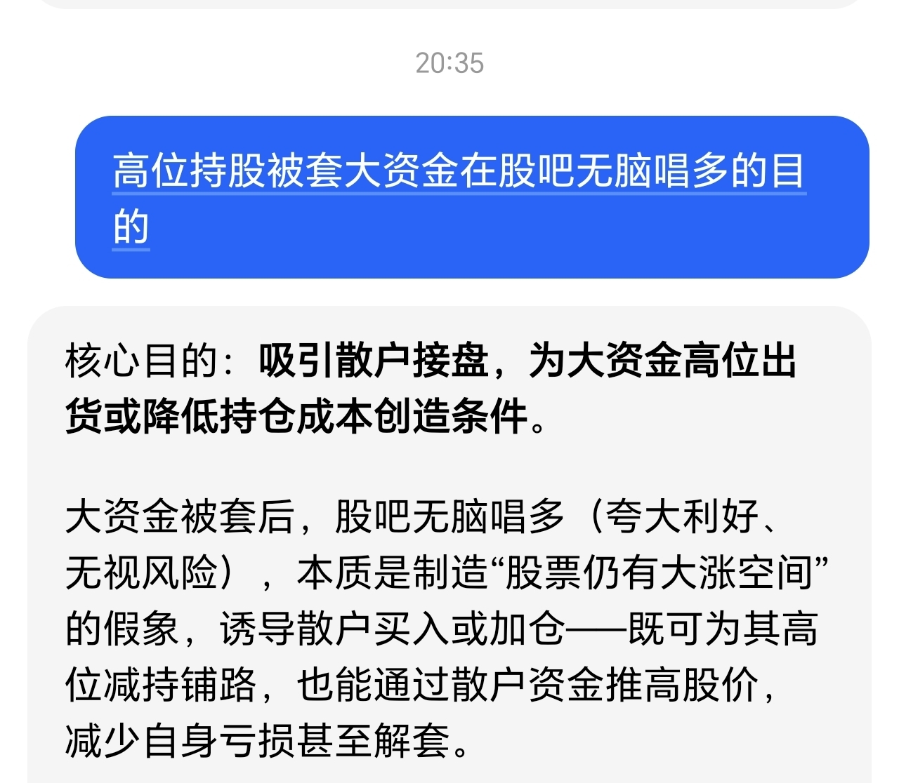 这就是那群高位重仓被套空狗的目的!!看看豆包是如何回答的