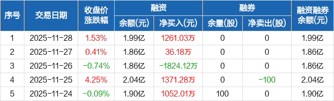 同飞股份:融资净买入1261.03万元,融资余额1.99亿元(11-28)