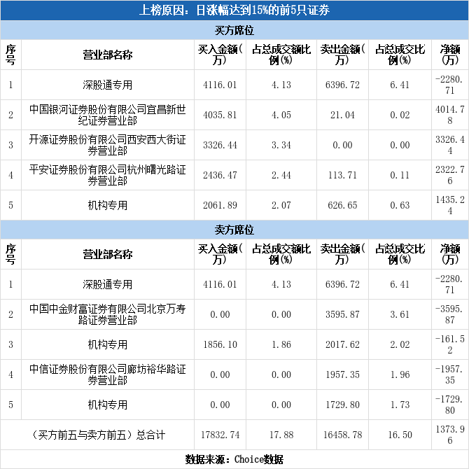 多主力现身龙虎榜,同飞股份涨停(12-23)