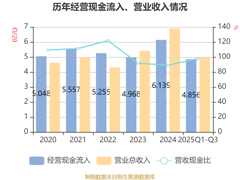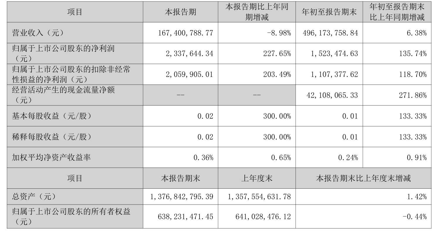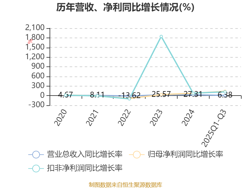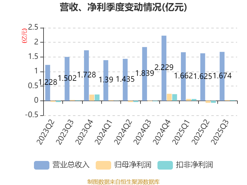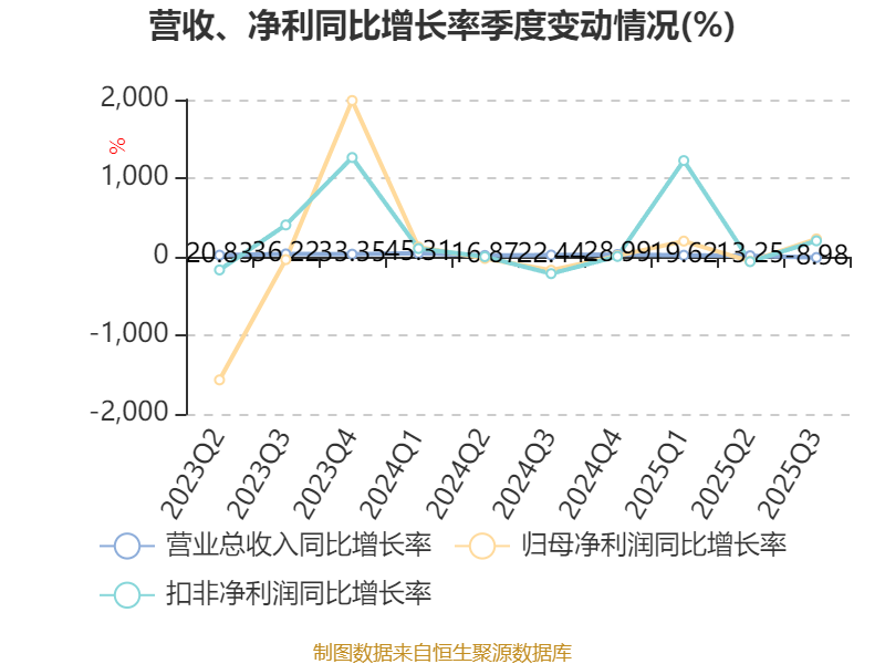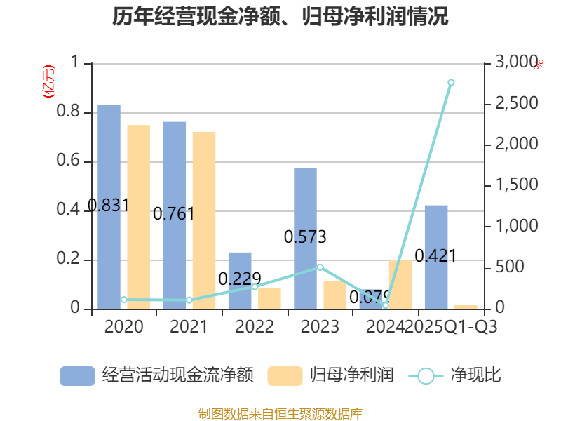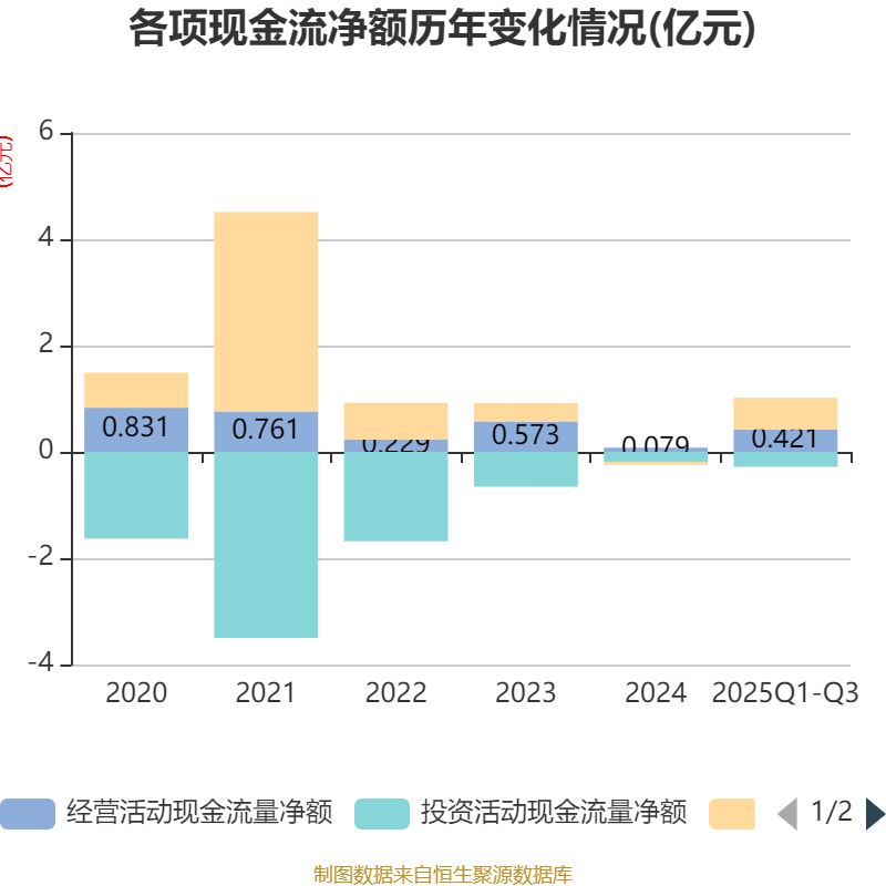 2025年前三季度,公司经营活动现金流净额为4210.81万元,同比增长271.86%;筹资活动现金流净额5966.95万元,同比增加6637.39万元;投资活动现金流净额-2816.77万元,上年同期为-1050.84万元。