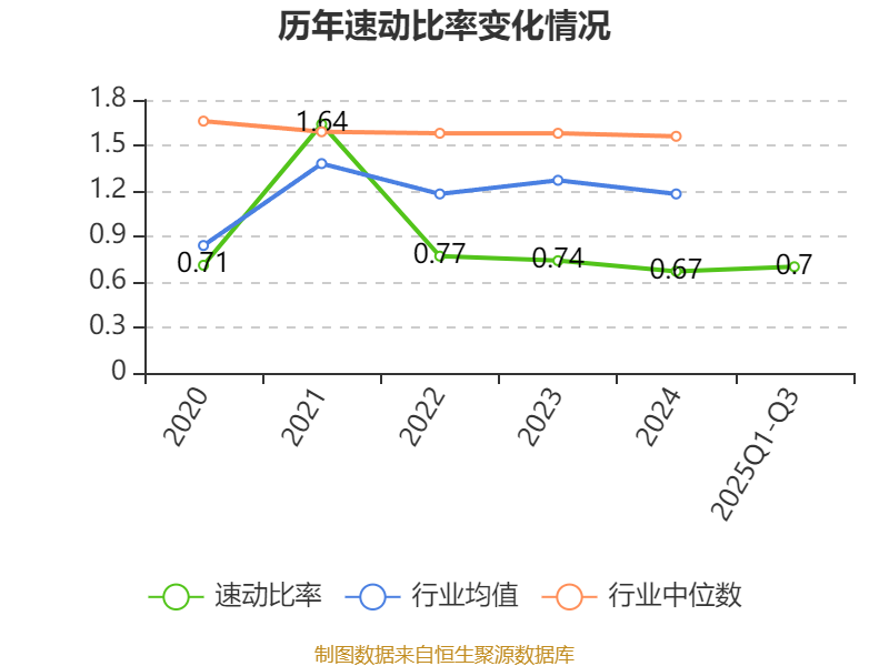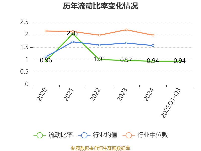 2025年前三季度,公司流动比率为0.94,速动比率为0.7。