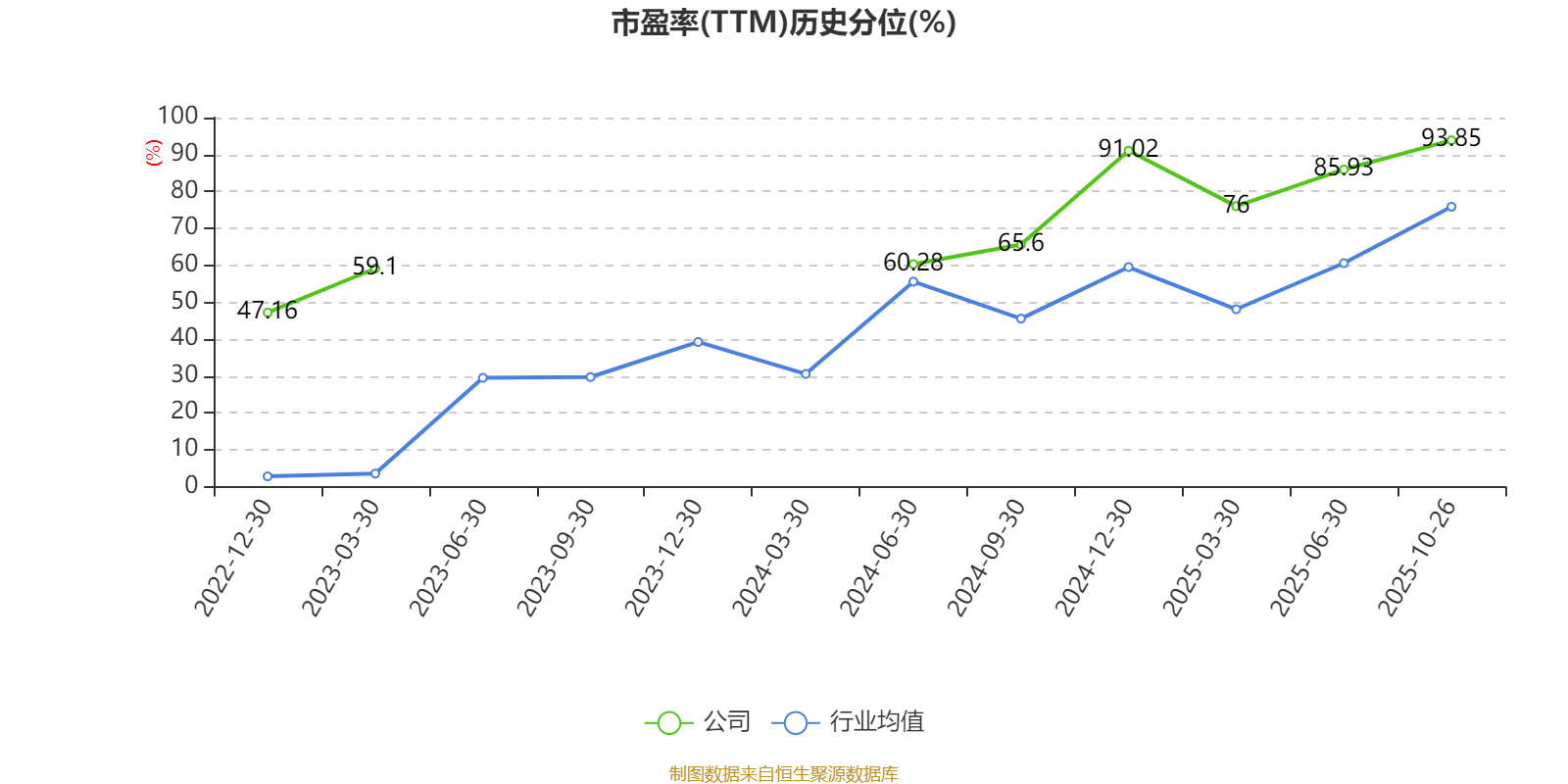 市盈率、市净率为负时,不显示当期分位数,会导致折线图中断。