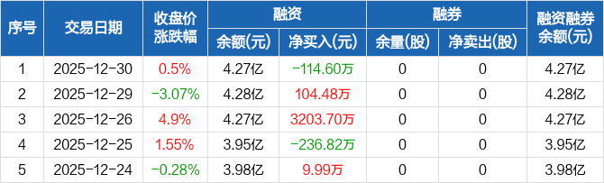 创益通:融资净偿还114.6万元,融资余额4.27亿元(12-30)