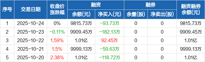 泰福泵业:融资净偿还93.73万元,融资余额9815.73万元(10-24)