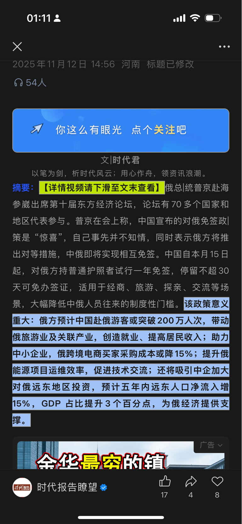 $泰福泵业(SZ300992)$ 中俄免签,会不会带动你,