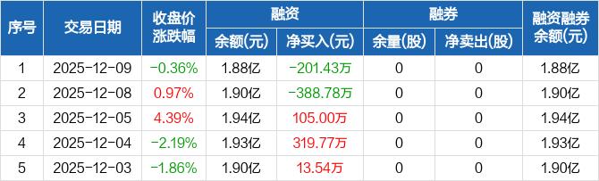 泰福泵业:融资净偿还201.43万元,融资余额1.88亿元(12-09)