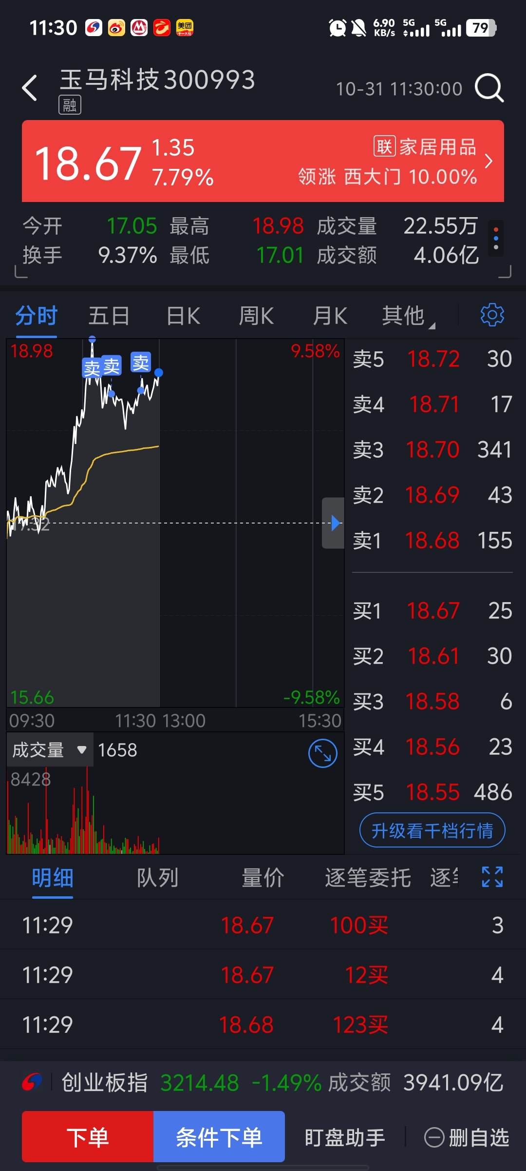 $玉马科技(SZ300993)$ 你下午不会涨停吧,我全出了