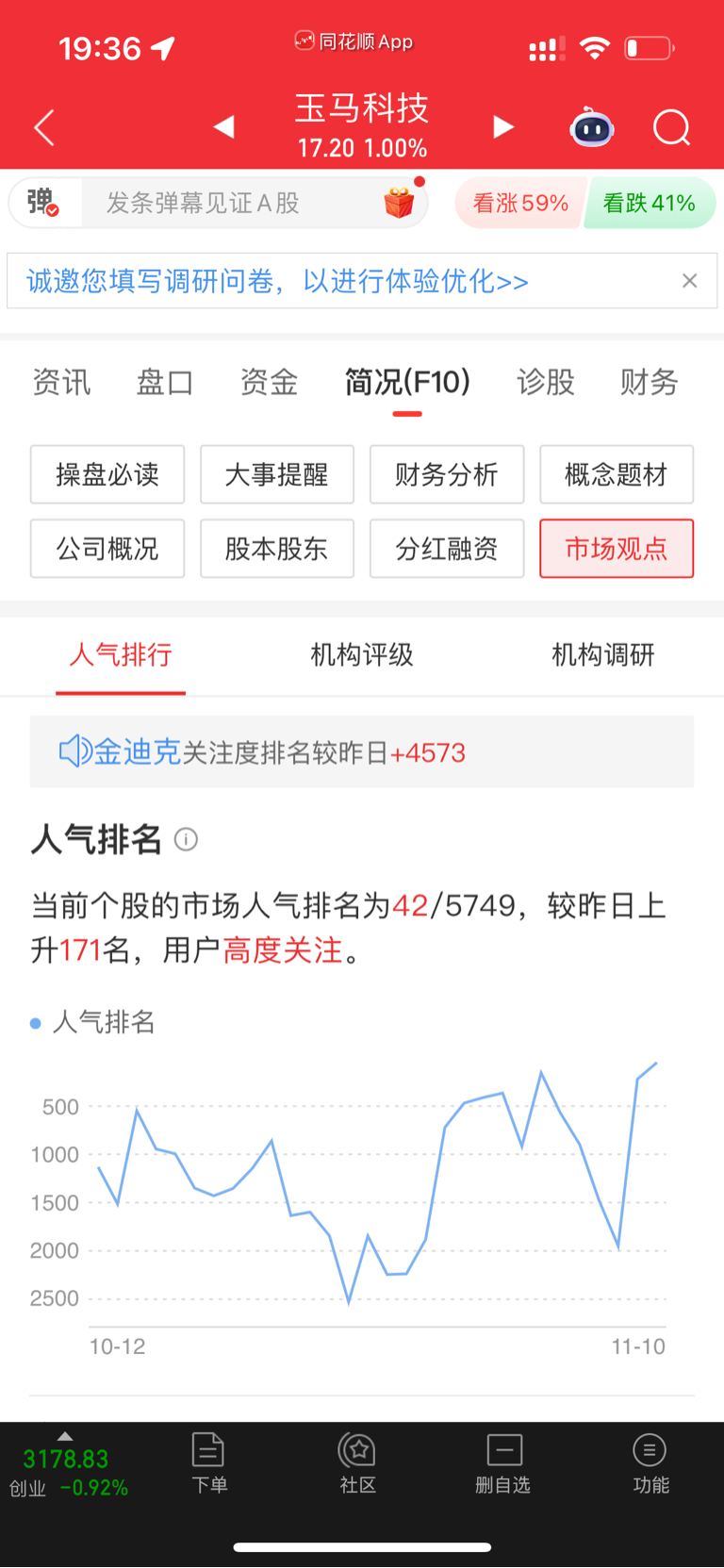 $玉马科技(SZ300993)$ 为什么同花顺排名这么高、排名42、可是东方财富排名一千多名