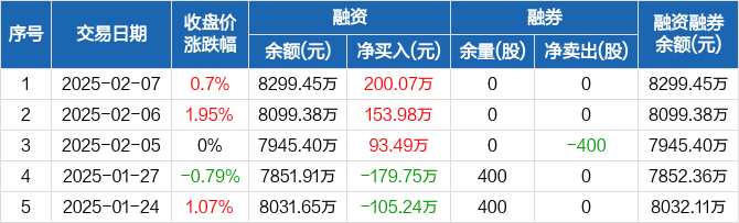 久祺股份:连续3日融资净买入累计447.54万元(02-07)