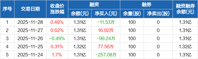 久祺股份:融资净偿还11.53万元,融资余额1.31亿元(11-28)
