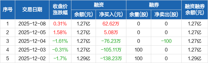 久祺股份:融资净买入62.62万元,融资余额1.27亿元(12-08)