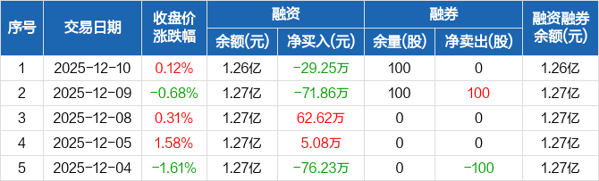 久祺股份:融资净偿还29.25万元,融资余额1.26亿元(12-10)
