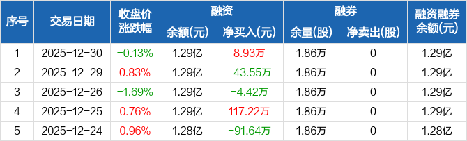 久祺股份:融资净买入8.93万元,融资余额1.29亿元(12-30)