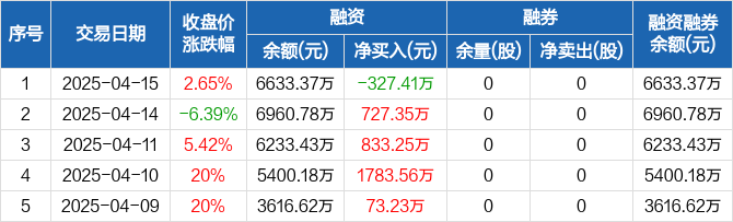 奇德新材:融资净偿还327.41万元,融资余额6633.37万元(04-15)