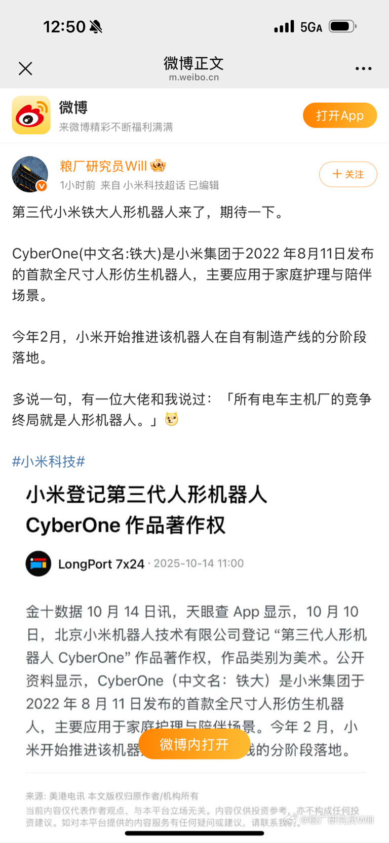 $奇德新材(SZ300995)$ $小米集团-WR(HK|81810)$ 终于来了!小米机器人!奇德定点小米机器人,北京米奇德!!!!!下午冲!