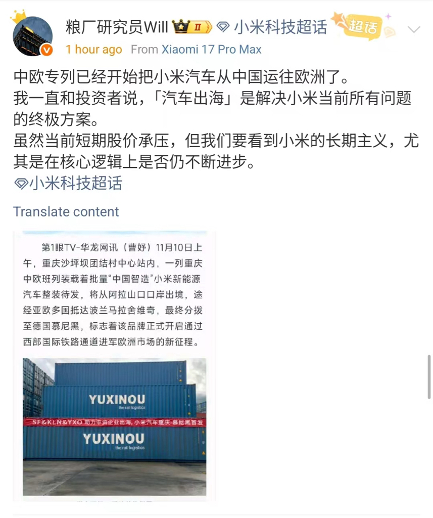 $奇德新材(SZ300995)$ Su7 Ultra率先出海!