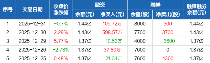 奇德新材:融资净买入109.72万元,融资余额1.44亿元(12-31)