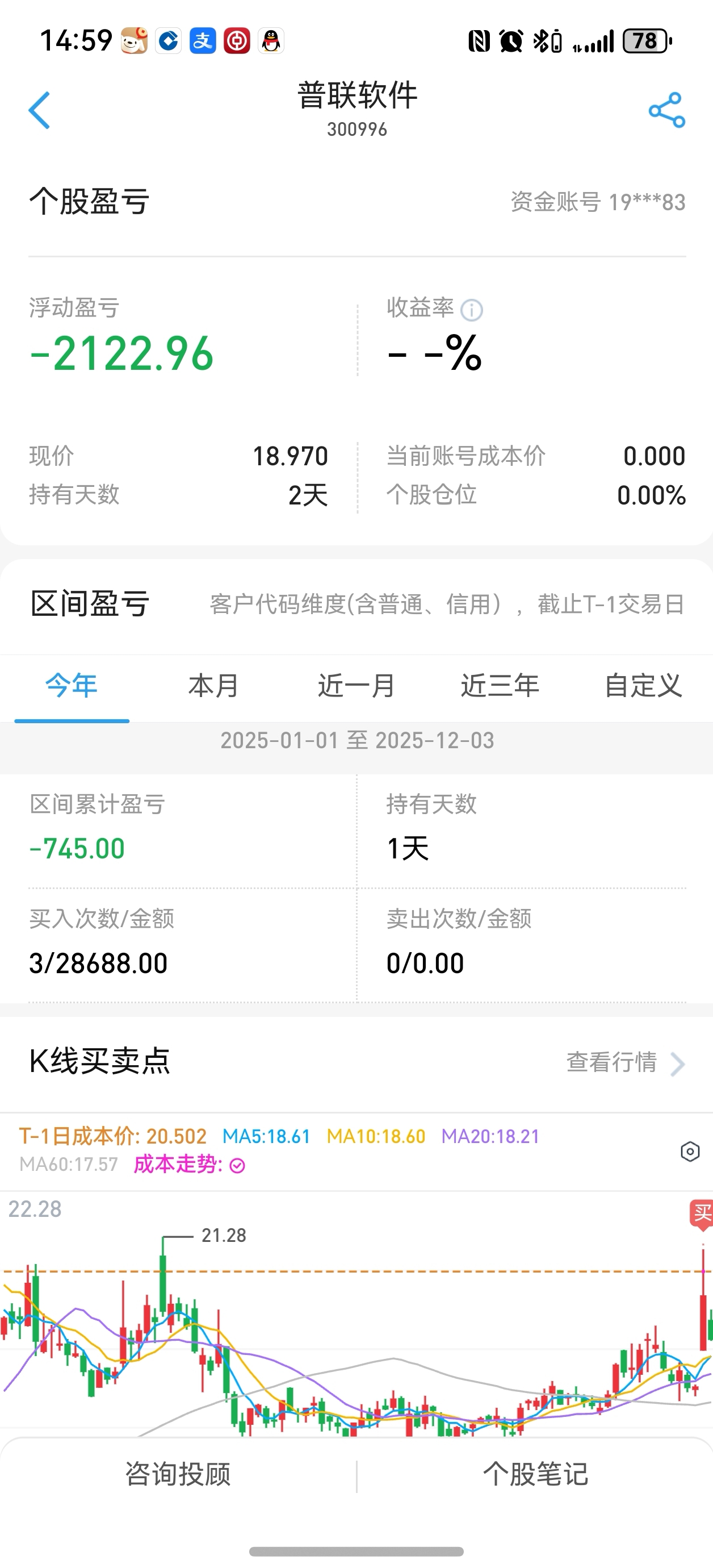 $普联软件(SZ300996)$ 恶心至极,割了,亏损2100再也不见。