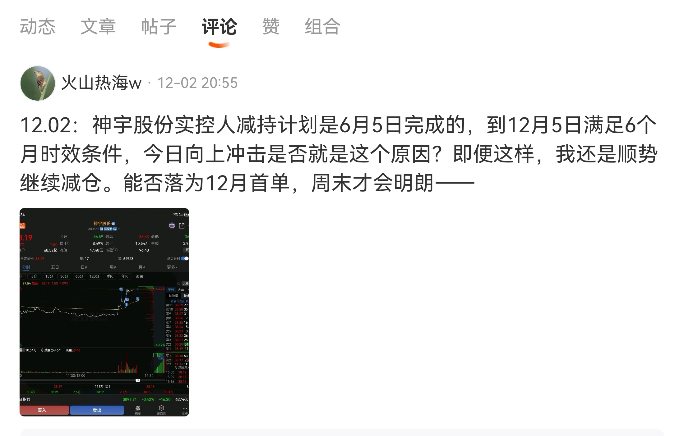 ——$神宇股份(SZ300563)$周二尾盘的拉升和周三的强势脉冲,一开始我以为是发债的前奏,周三盘中看了铜期货的走势后才有点“醒悟”顺势而为立即大幅减仓最高一单卖在41.14元很有“满足感”,今日38元以下回补了1/5。(附图及记录)