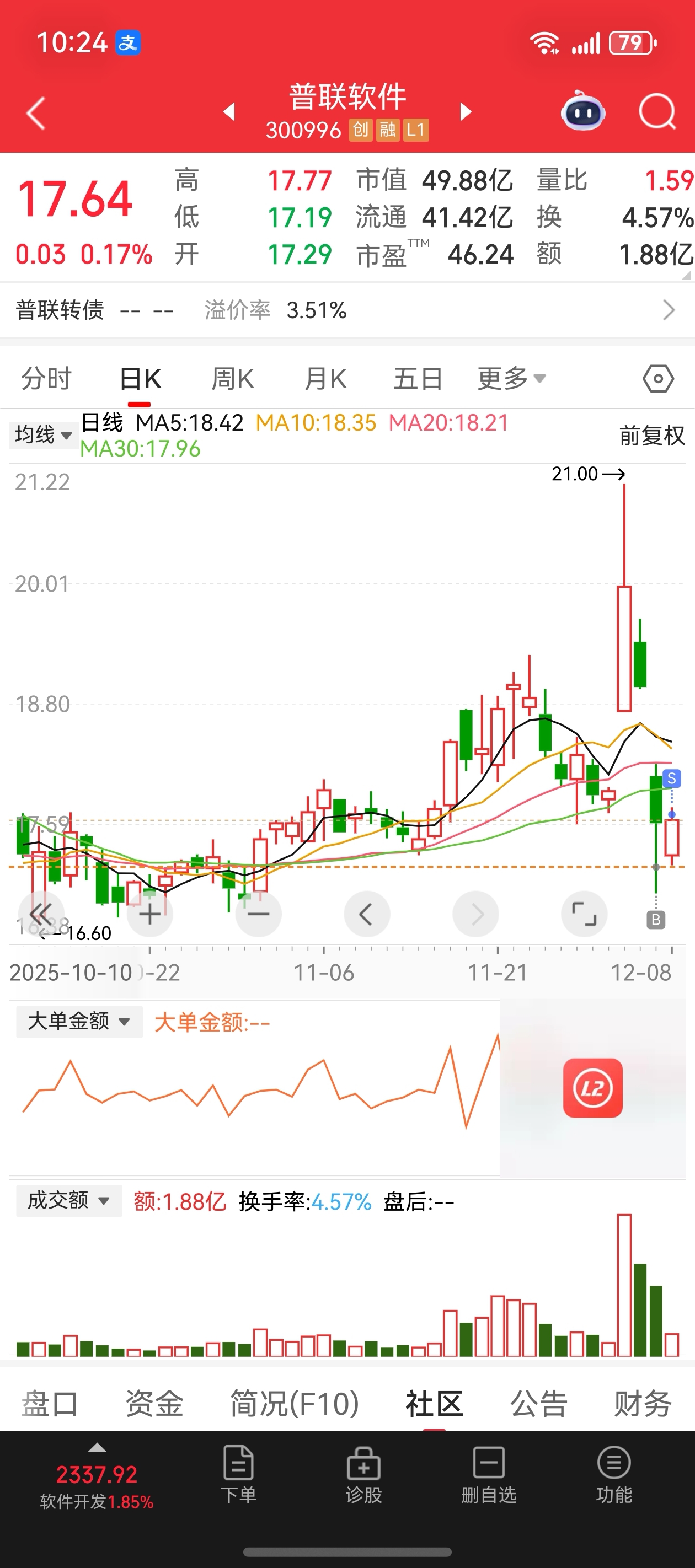 $普联软件(SZ300996)$ 捞一笔就走 本来想着今天怎么滴能涨三五个点呢 没想到还是拉易中天 超级主力真的怕散户挣到钱啊