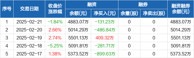欢乐家:融资净偿还131.23万元,融资余额4883.07万元(02-21)
