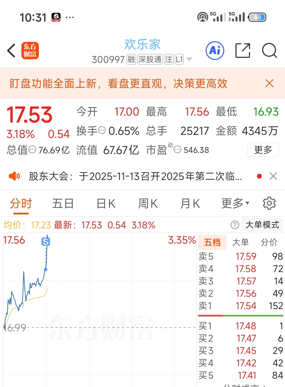 $欢乐家(SZ300997)$ 我是不是卖飞了