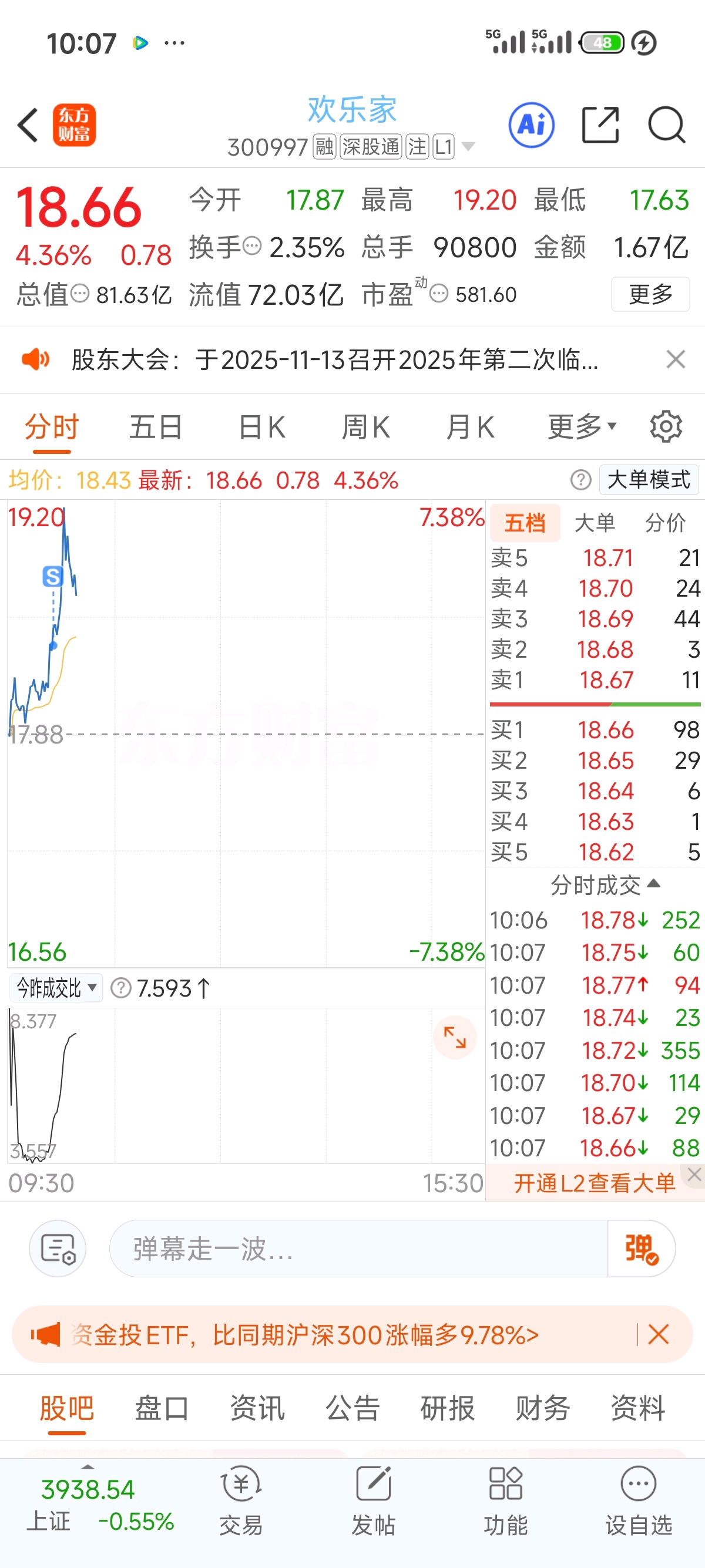 $欢乐家(SZ300997)$ 我卖飞了么难道