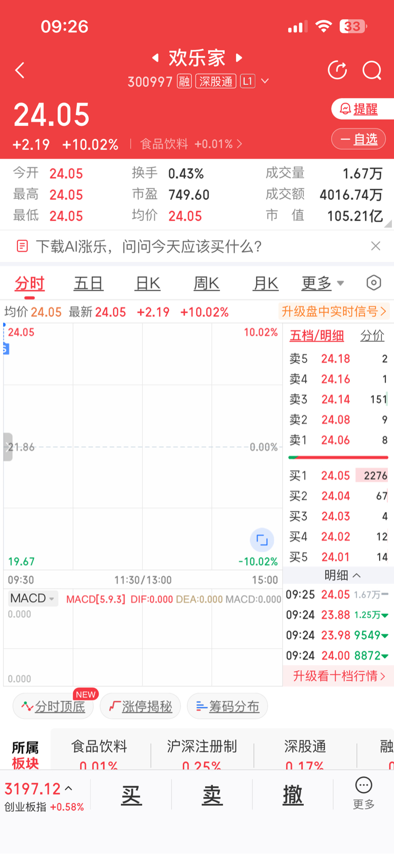 $欢乐家(SZ300997)$ 几天赚了二十几个点,出来先。