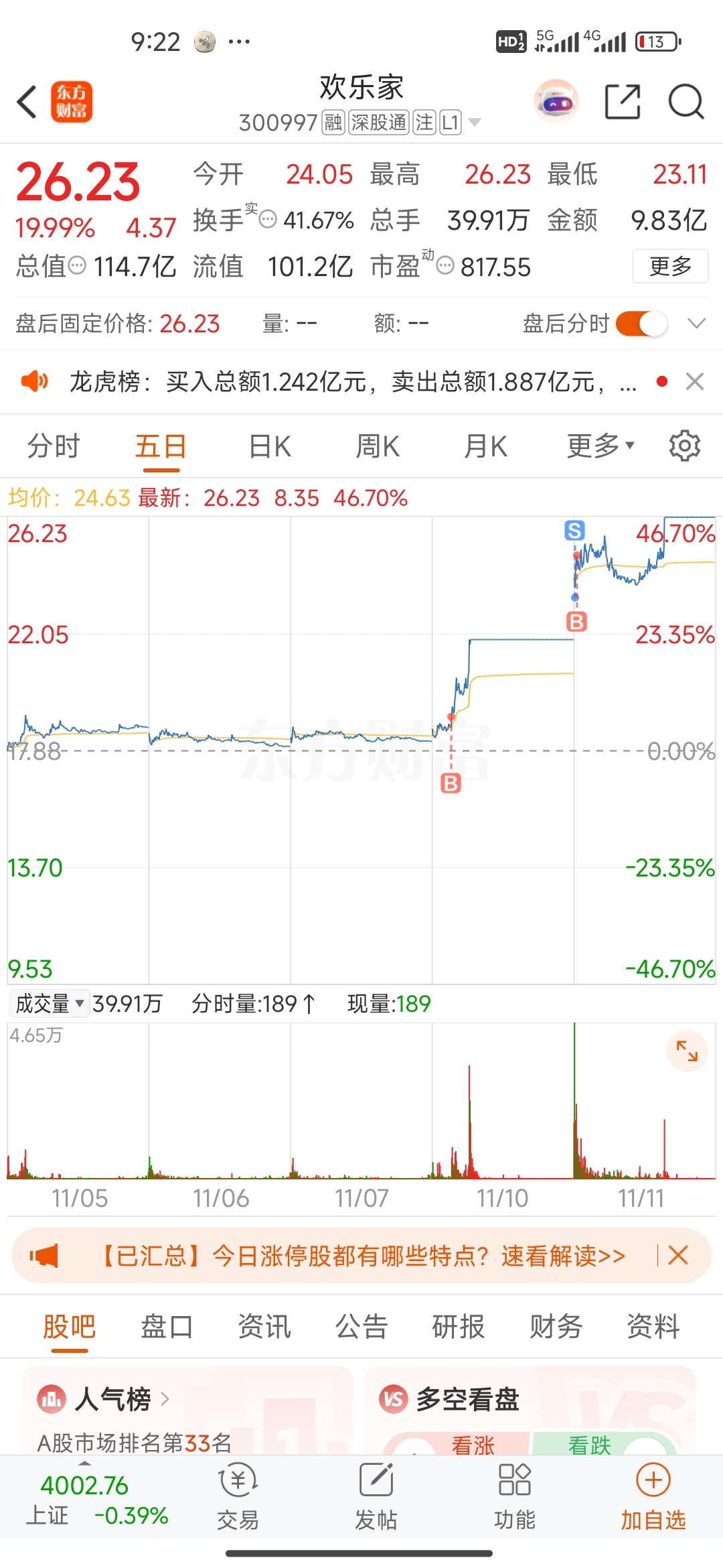 $欢乐家(SZ300997)$ 已全仓了 就指望着你这个月带着翻倍了