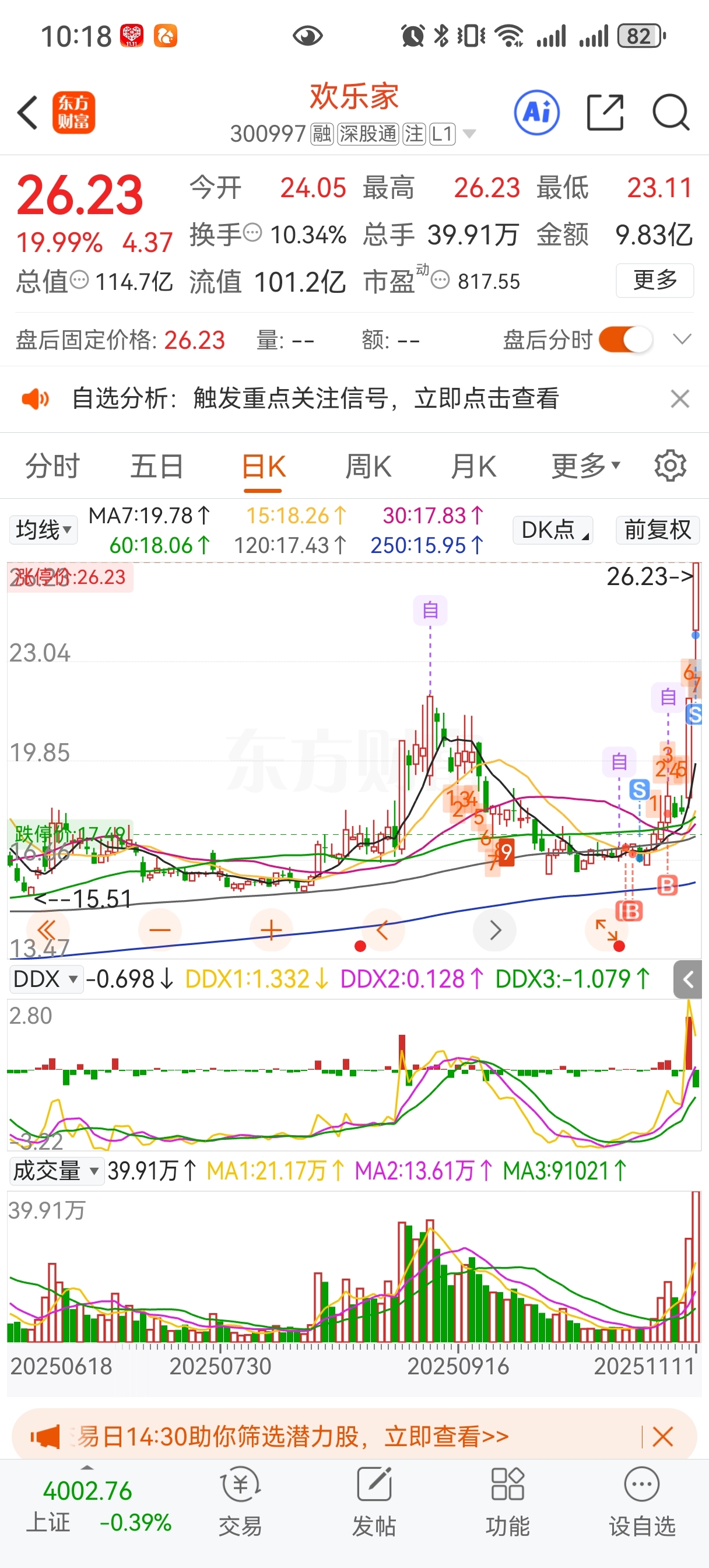 $欢乐家(SZ300997)$ 卖飞了,难受死