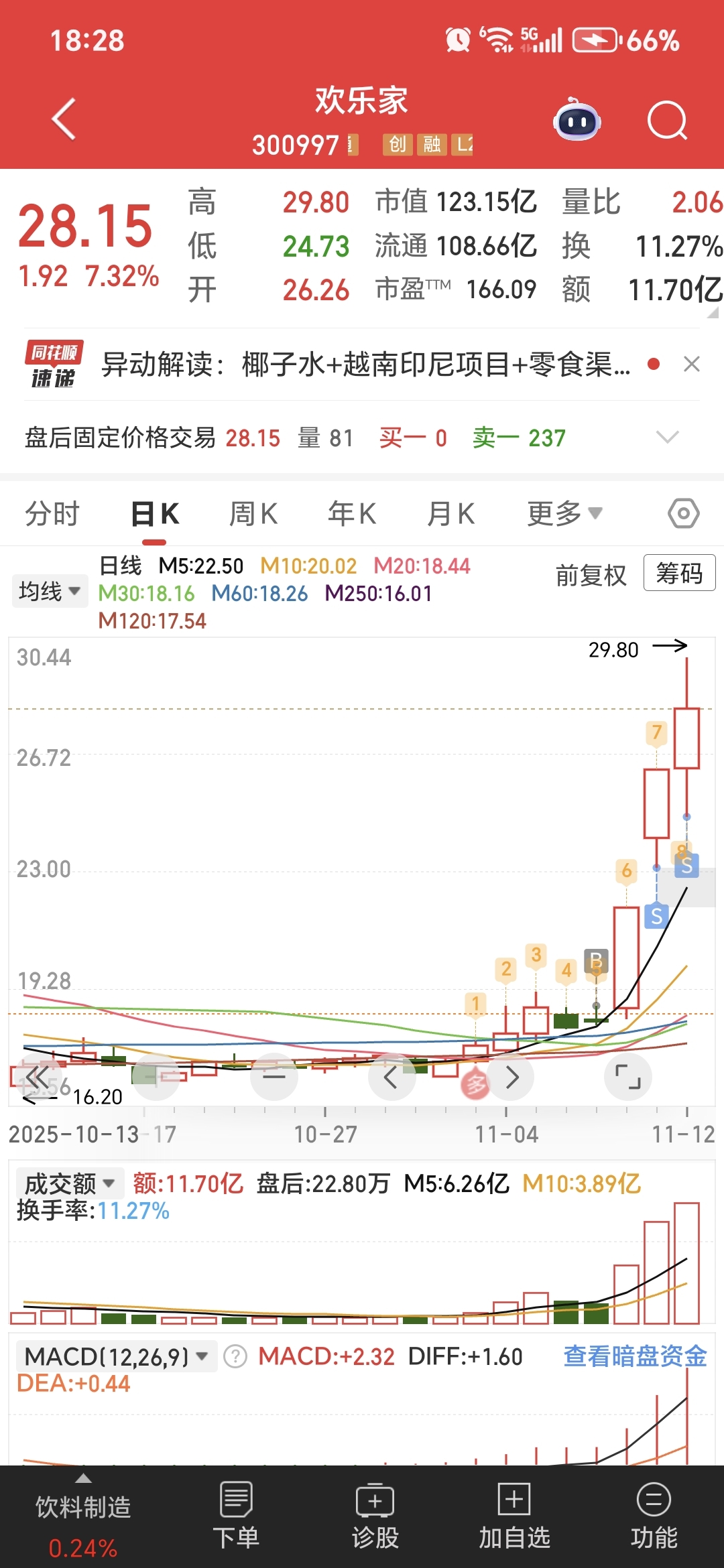 $欢乐家(SZ300997)$ 三天吃了51个点