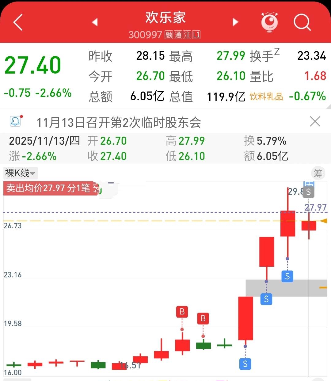 $欢乐家(SZ300997)$ 最后一点27.97全部清了,谢谢主力发的红包,留下的继续发财!