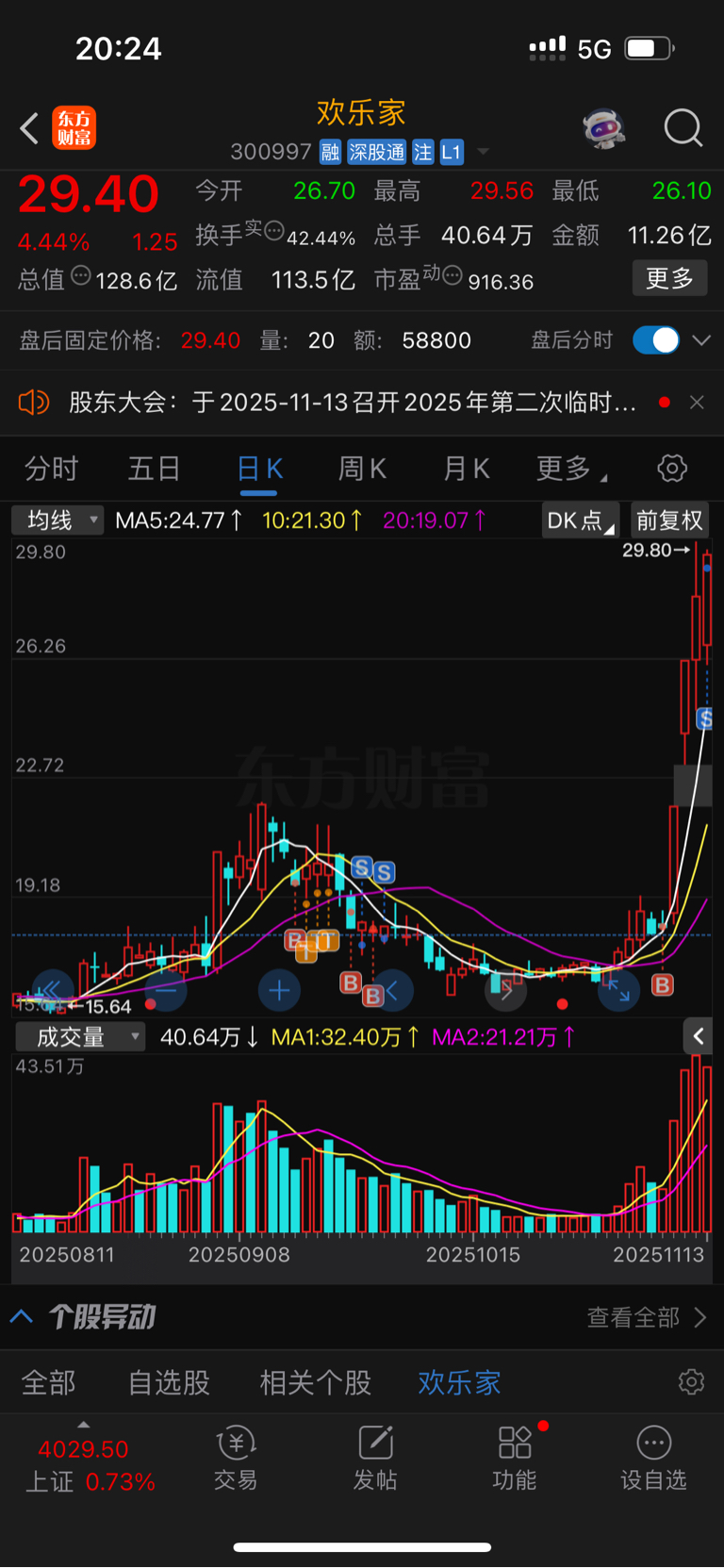 $欢乐家(SZ300997)$ 这个买点我自己都感觉不可思议,今天出了一点明天拉高在出
