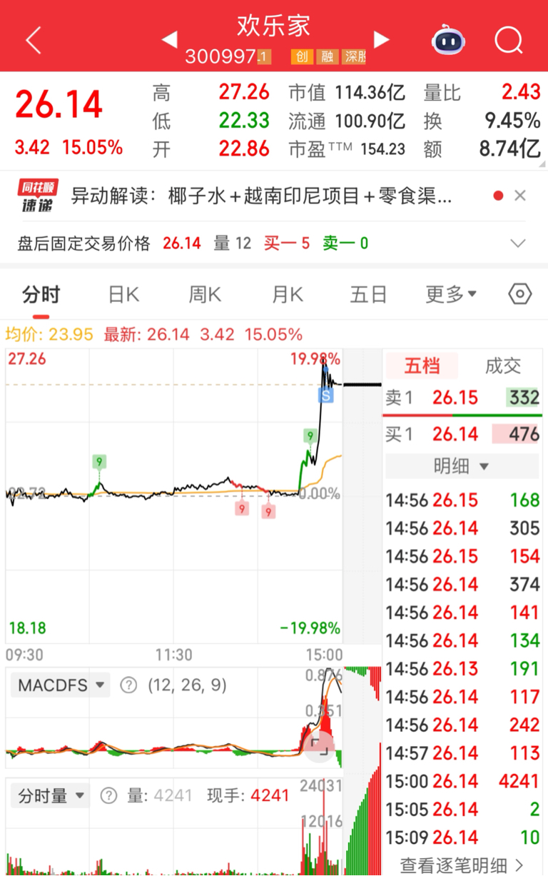 $欢乐家(SZ300997)$ 看到的太晚了,17-18%出掉了一些
